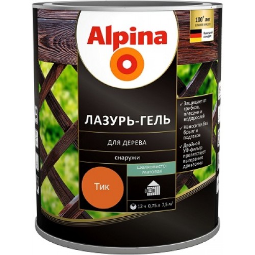 Alpina Lasur-Gel лазур-гель для деревини шовковисто-матова Тік (0,75 л)
